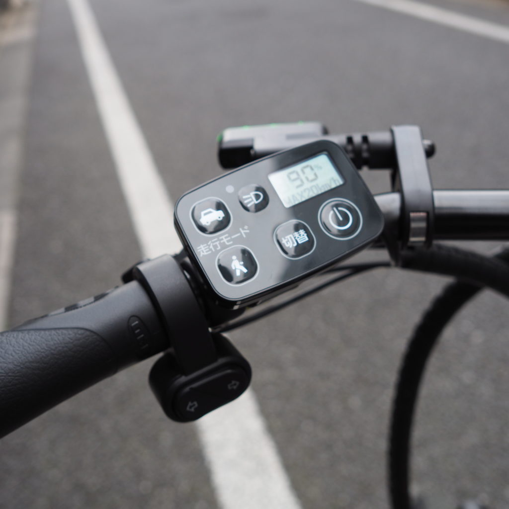 スイッチは皆様お馴染みの電動自転車タイプですので電池の減りや時速など一目瞭然↓